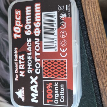 Hellvape Dead Rabbit M RTA Max Shoelace Cotton features 100% organic cotton, fast absorption, and can be used for any rebuildable atomizer. Each pack has 10 pieces of shoelace cotton.
