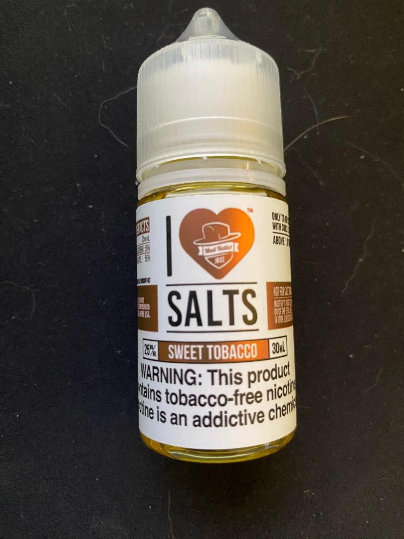 I Love Salts Sweet Tobacco E-juice comes in a perfect 50VG/50PG ratio that allows for a very indulging experience. This sweet tobacco flavor is rich and complex, blending the smooth nuttiness of earthy tobacco with a hint of sweetness that keeps the taste from ever being bitter.You get an amazing flavor and vapor production without having to sacrifice either or. This product also comes in two nicotine levels: 25mg, and 50mg.