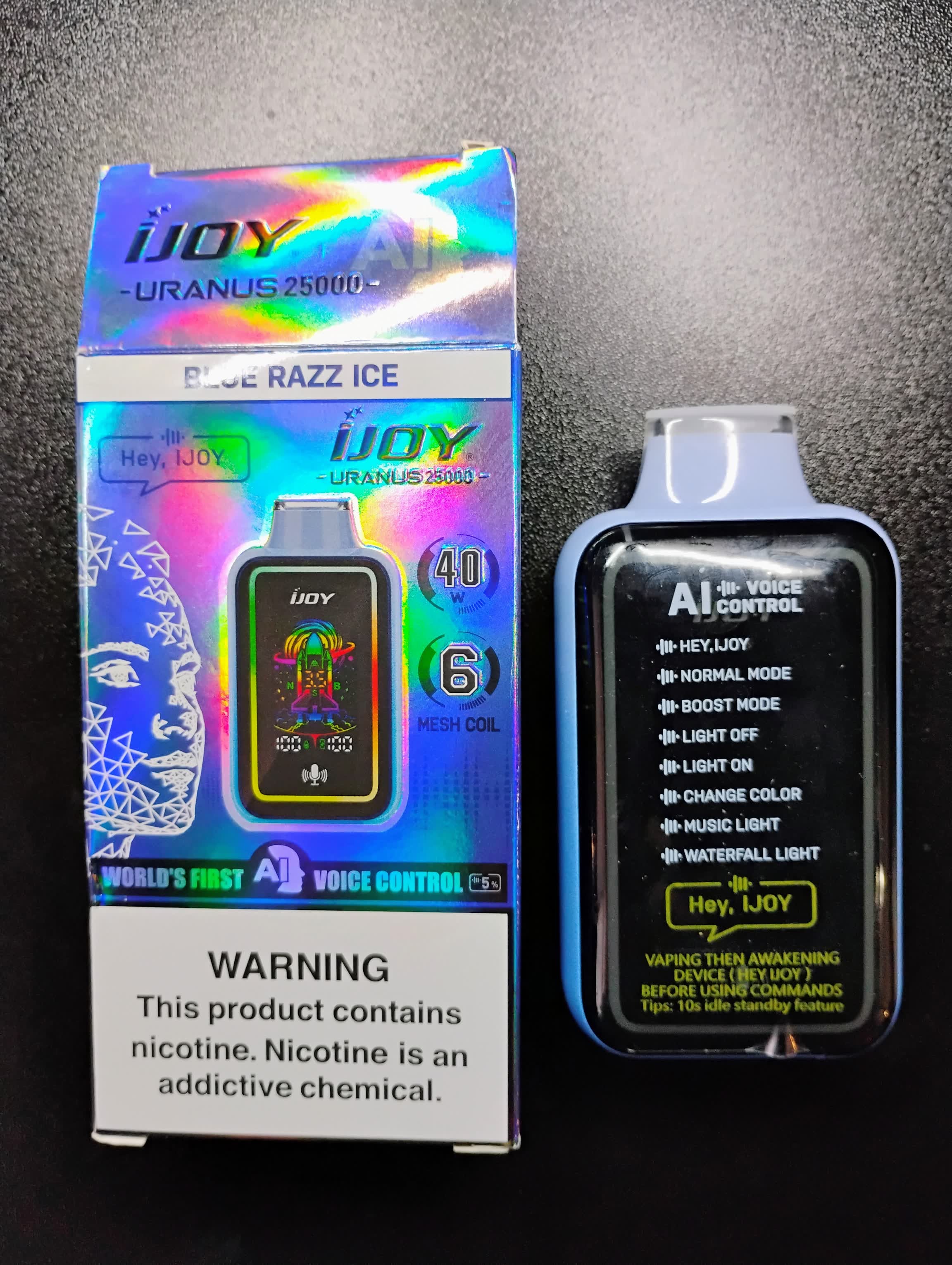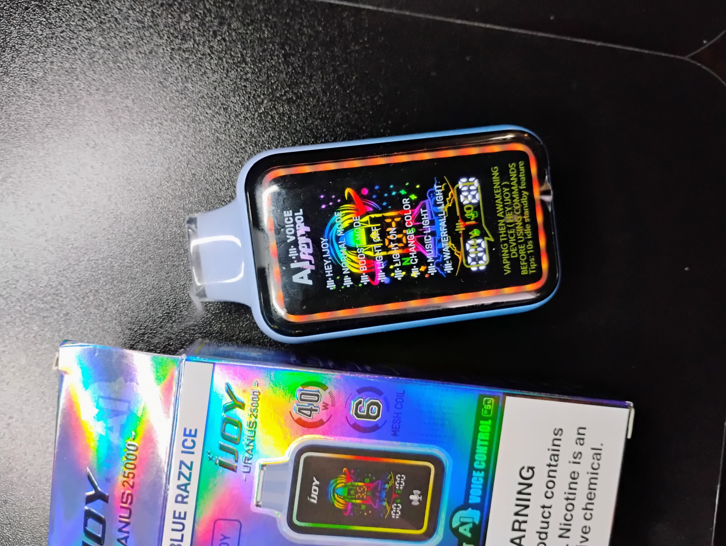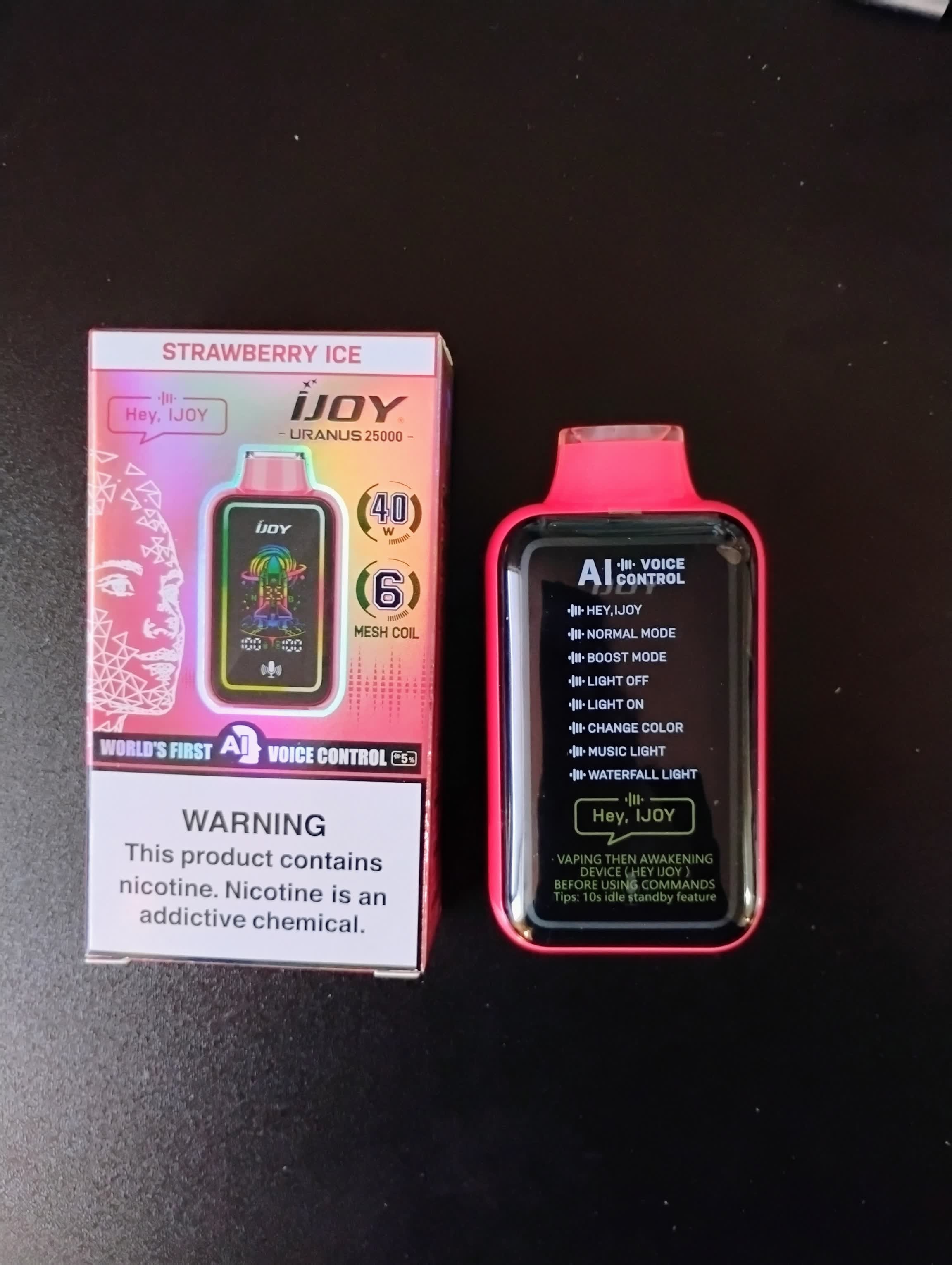 AI technology has enchanted iJOY Uranus 25000 and given it unimaginable functions. iJOY Uranus is the first voice-controlled vape in the world. It is pre-loaded with 20ml e-juice of high quality. A robust 850mAh battery supports daily use. You can wake up the AI and send your orders. It can help you adjust the output mode and choose the highest 40W output. Light effects can be activated, changed, and deactivated by your voice. Uranus 25K vape is an AI-augmented vape that has no parallel among its peers.