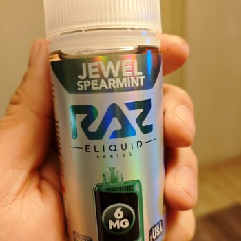 Any true mint lover should not miss Jewel Spearmint Pod Juice RAZ Vape Juice. It is the freebase nicotine version with up to 100ml vape juice. As usual, it offers vapers three levels for nicotine strength. The 0mg version is especially for nicotine-free vaping. 3mg and 6mg versions are for decent sub-ohm making and massive clouds. Are you ready to be around the minty, tingly, and a little spicy clouds made with Jewel Spearmint Pod Juice RAZ Freebase Nicotine E-juice? Fill you tanks and enjoy!