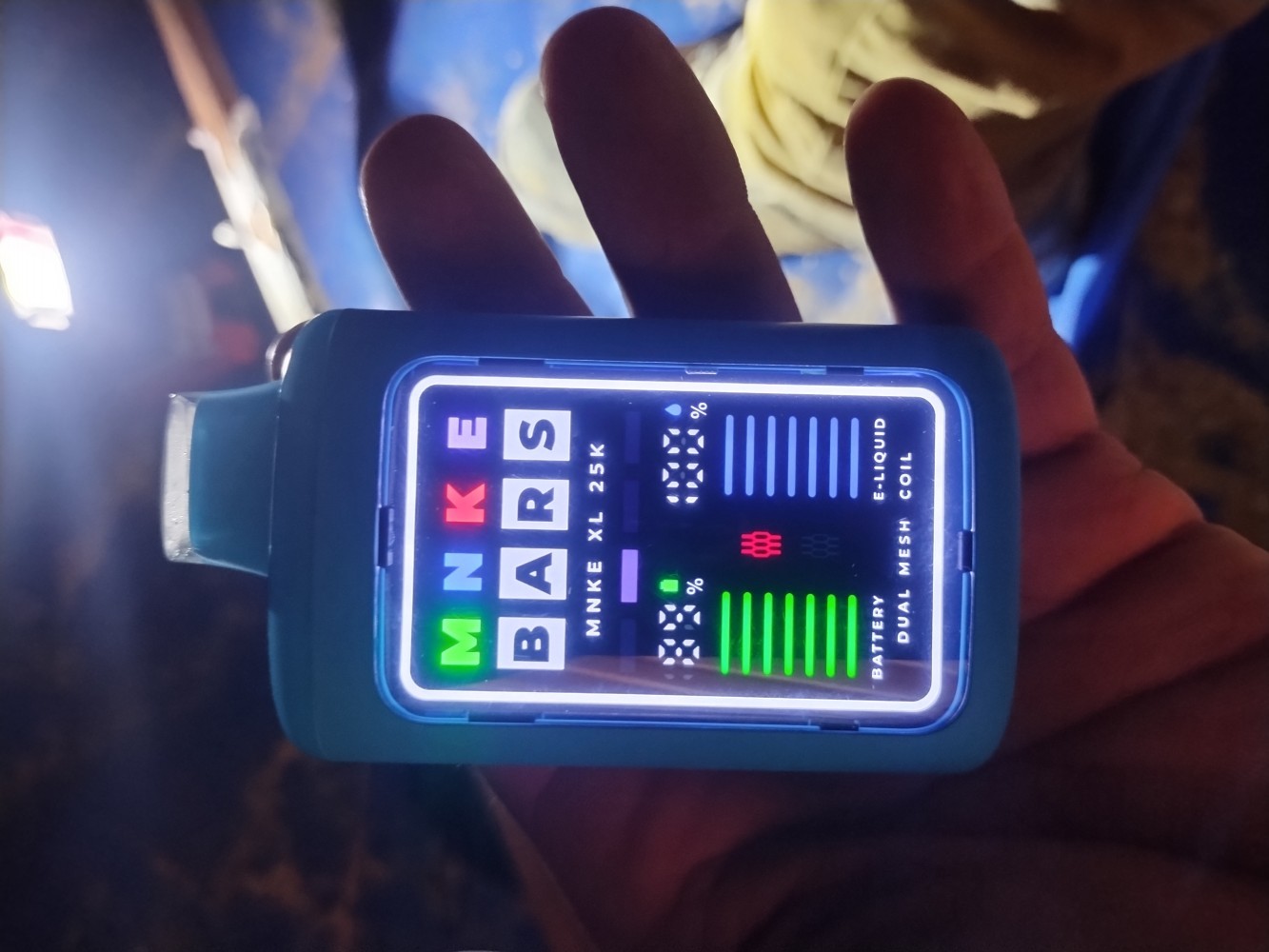 MNKE BARS XL 25K comes with 18ml exclusive vape juice, a powerful 1000mAh battery with overcharge protection, and dual mesh coils for two different vaping modes. MNKE BARS XL provides more puffs than regular modes with an XL-size e-juice tank. It is pre-built with two mesh coils. You can choose the single coil mode or the dual coil mode for different vaping styles. Also, it is powered by a 1000mAh for long time use and overcharge protection ensures your safety when you enjoy vaping. The digital screen displays the change of e-liquid and battery life clearly. All these useful functions make MNKE BARS XL the best choice.