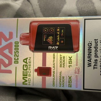 Revolutionary innovations have taken place, upgrading the RAZ DC25000 with a large juice tank with 16ml e-liquid, a magnificent LED display screen, and a higher puff count than the former RAZ TN9000. You can expect new features and better performance from the next generation of RAZ DC25K. This vape comes with advanced coils and allows you to do temperature control. Two vaping modes are also available, which has become the standard for disposable with Boost Mode. If you leave the Boost Mode on from time to time, you can enjoy up to 25000 puffs in total. RAZ DC25000 is just your perfect disposable vape.