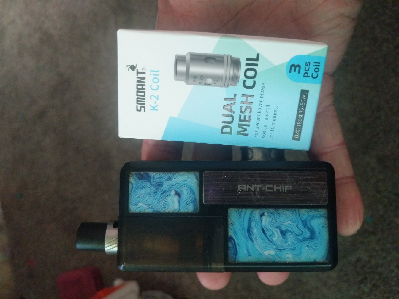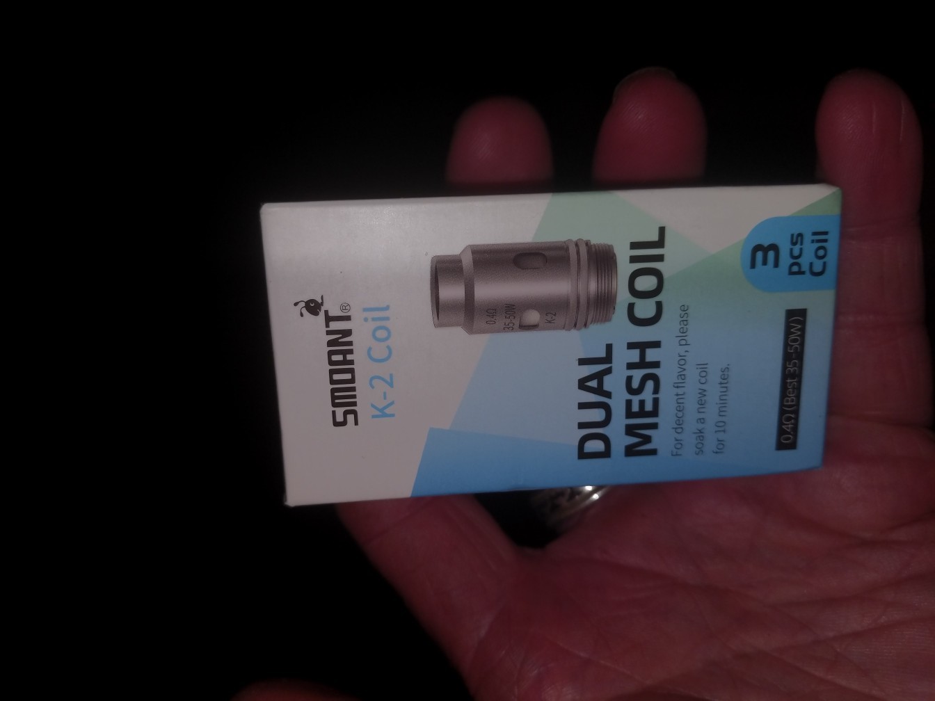 Coils: Knight 80 0.3ohm mesh coil; Knight 80 0.4ohm dual mesh coil