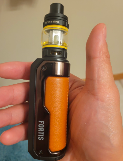 SMOK Fortis Kit features elegant leather on the top of his body, the ergonomic design makes it easy to grip and non-slip. Powered By a single external 18650 / 21700 battery(not included) then serves your vaping with adjustable power up to 80w. Built-in smart chipset, features 0.001s instant firing speed, straightforward operation data on the 0.96inch TFT color screen, with operation buttons, you can adjust the wattage and function or more. The 6.5ml TFV18 Mini Tank comes with two mesh coils(one pre-installed), with an adjustable bottom airflow control valve, TFV18 Mini Tank will definitely bring an all-new vaping experience! The top filling system is easy to use and effectively leak-proof.