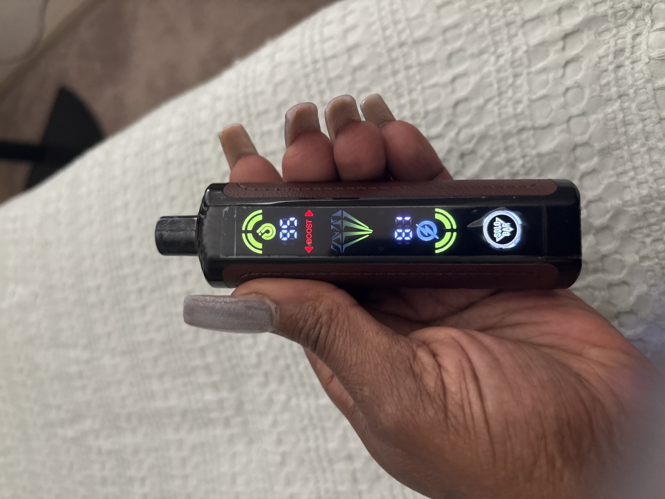 Solobar DTL25000 Disposable E-hookah redefines the meaning of DTL disposable vape. Contrary to its portability, Solobar DTL25000 can accommodate 26ml e-juice with a much lower nicotine strength (0.6%). Such designs ensure that DTL25000 Vape can produce more puffs and the flavors remain fruity and fresh, which is similar to the real shisha flavors. If you prefer stronger flavors and hits, just switch to the Boost Mode. Remember to adjust the airflow with the valve at the bottom to see the potential of Solobar DTL25000 Diposable Hookah.